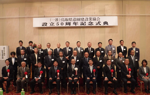 式典には平井鳥取県知事や深澤鳥取市長をはじめ県内の町村の首長の方々、石破衆議院議員をはじめ鳥取県選出の国会議員や県議会議員のお皆さま、また(一社)公園緑地協会の高梨会長様をはじめ各方面より多くのご臨席を賜り盛大な祝賀会となりました。