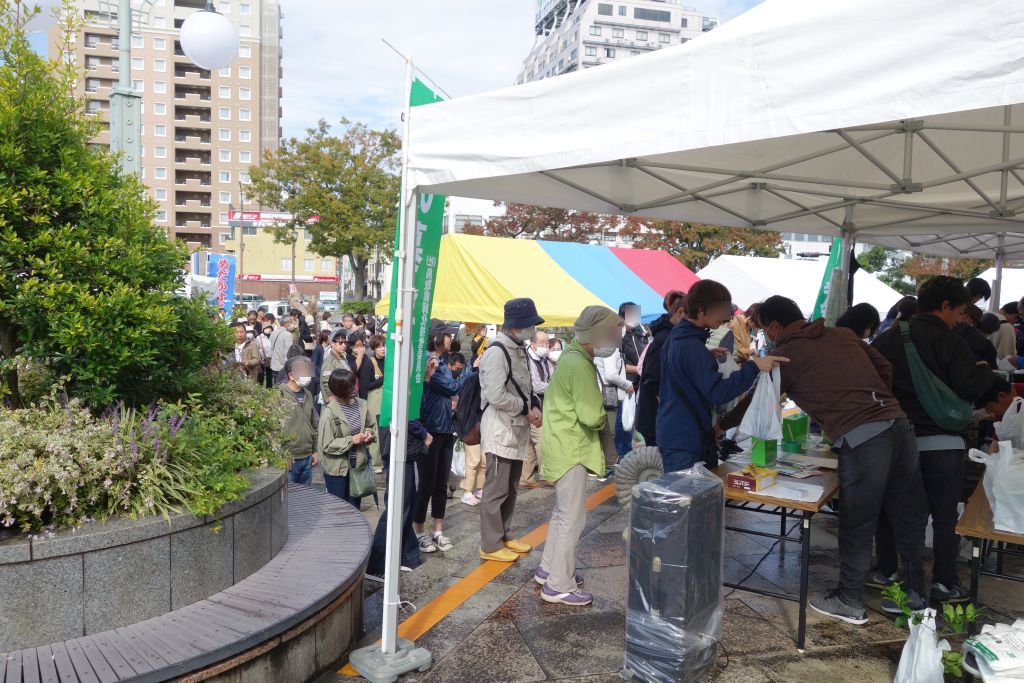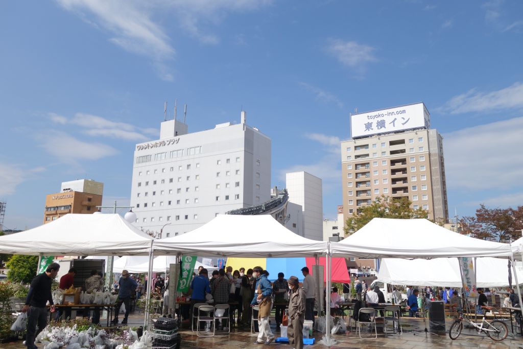 今年は米子がいなロードが完成した米子駅周辺の活性化の一助になればと、駅前のだんだん広場にて開催。鳥取県西部総合事務所の平木環境建築局長さま、伊澤米子副市長さまをご来賓に迎え、多くの来場者で賑わいました。