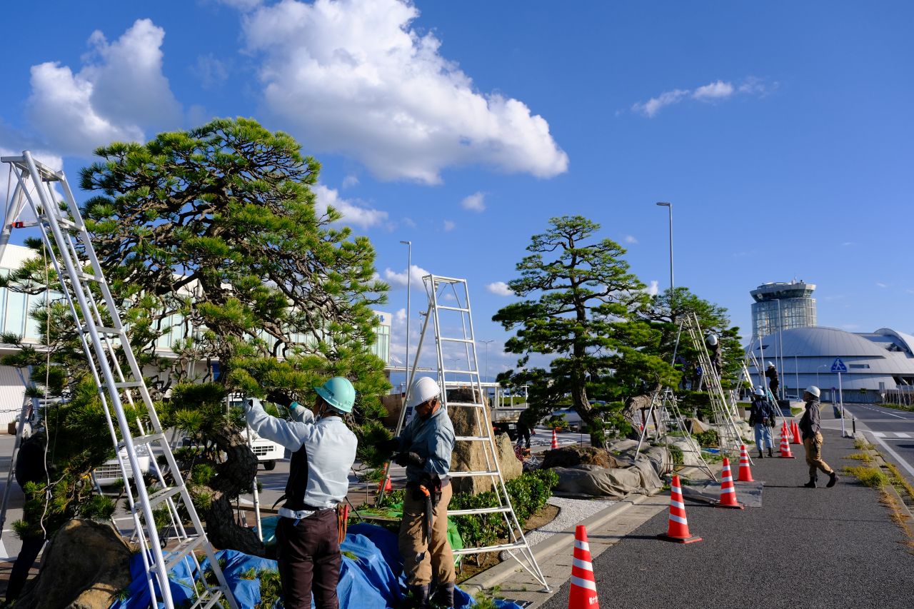 小春日和のなかを現代の名工による技術指導で大型クルーズ船の観光客をはじめ皆さまをおもてなしする山陰らしい美しい景観づくりを行いました。